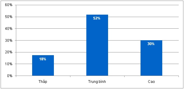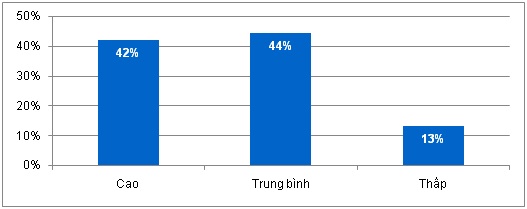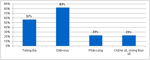 Còn về mức độ an toàn thông tin: Các doanh nghiệp đã quan tâm tới các biện pháp đảm bảo an toàn, an ninh thông tin. Phần lớn các doanh nghiệp đã sử dụng các phần mềm diệt virus (tới 83% doanh nghiệp sử dụng phần mềm diệt virus), biện pháp áp dụng tường lửa có tỷ lệ sử dụng thấp hơn, chiếm 57%