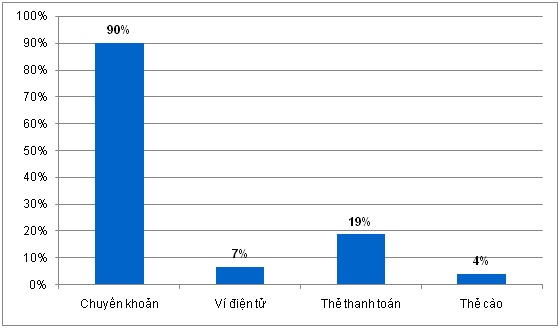 Trong trường hợp doanh nghiệp hỗ trợ khách hàng thanh toán không dùng tiền mặt thì hình thức thanh toán được sử dụng phổ biến nhất là chuyển khoản qua ngân hàng, tiếp đó là các loại thẻ thanh toán.