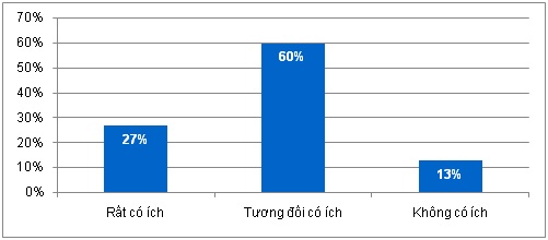 Đánh giá về lợi ích của các dịch vụ công trực tuyến, 27% doanh nghiệp cho biết rất có ích, 60% là tương đối có ích và 13% cho là không có ích.