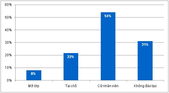 Hơn một nửa doanh nghiệp đã quan tâm tới hoạt động bồi dưỡng kiến thức về công nghệ thông tin và thương mại điện tử cho nhân viên thông qua việc cử nhân viên tham dự các chương trình đào tạo hoặc bồi dưỡng tại chỗ. Tuy nhiên, có tới 31% doanh nghiệp không tiến hành bất cứ hình thức bồi dưỡng nào cho nhân viên về công nghệ thông tin và thương mại điện tử.