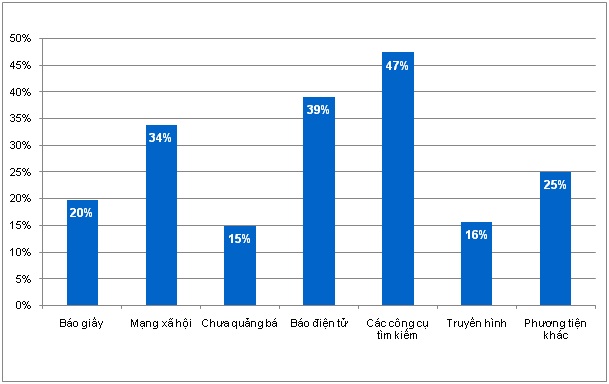 Một xu hướng nổi bật là các doanh nghiệp đã quan tâm đáng kể tới hoạt động quảng bá website trên các phương tiện truyền thông truyền thống cũng như trực tuyến. Đáng chú ý là các công cụ tìm kiếm được doanh nghiệp quan tâm nhất để quảng bá website của mình, trong khi đó truyền hình là phương tiện truyền thông ít được sử dụng nhất.