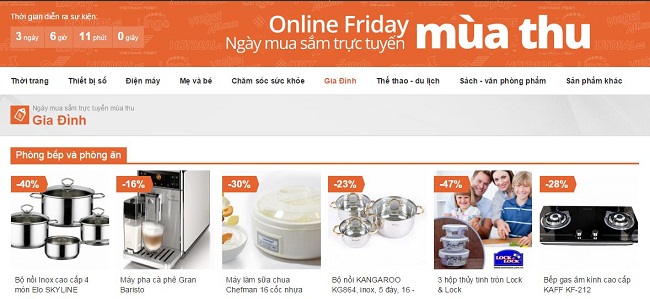 Ngày mua sắm trực tuyến Mùa thu diễn ra cuối tuần này (Thứ sáu, 28/8) với hơn 50.000 sản phẩm khuyến mại lớn được cập nhật và sắp xếp đầy đủ theo các nhóm ngành hàng trên website www.OnlineFriday.vn hướng đến dịp Quốc khánh và mùa tựu trường. Hiện có rất nhiều sản phẩm khuyến mãi thuộc các nhóm hàng đồ điện tử, thời trang đã được các doanh nghiệp cập nhật.