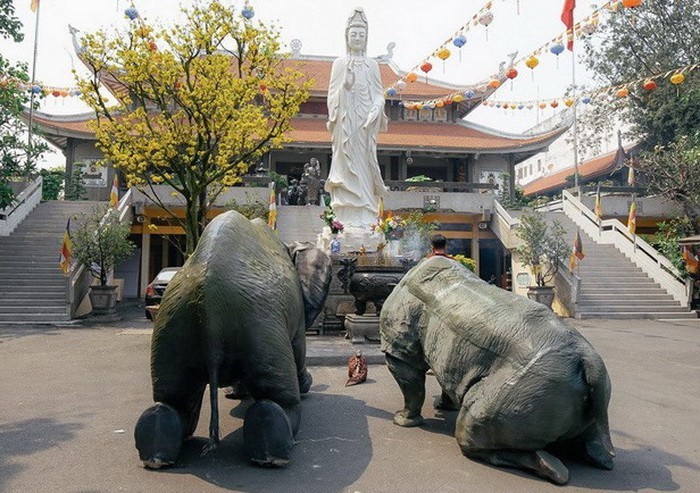 Mô hình động vật hoang dã kêu cứu được đặt tại khuôn viên chùa Vĩnh Nghiêm, TP.HCM