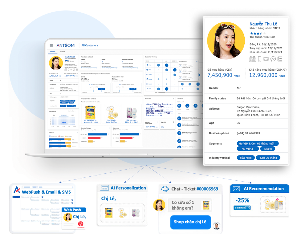 - Antsomi là một trong những đơn vị tiên phong trong khu vực Đông Nam Á cung cấp giải pháp CDP. Vậy đâu là sự khác biệt giữa CDP 365 với các đơn vị khác?