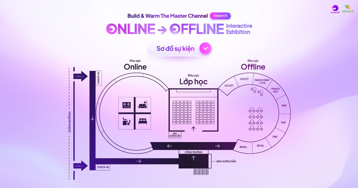 Sự kiện được tổ chức bởi PangoCDP, VietGuys cùng các đối tác đồng hành Giftee, Dentsu X, Zalo Mini App, Creative Point, Hypur sẽ mang đến loạt trải nghiệm Online to Offline tại 2 khu vực chính với các hoạt động: