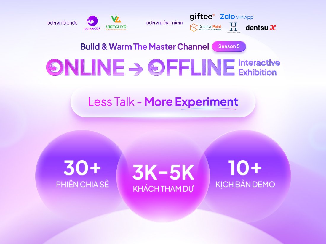 Sự trở lại của “Build and Warm the Master Channel” - mùa 5 sẽ vượt khỏi hình thức “talk & talk” hay “booth & booth” thường thấy mà sẽ mở rộng thành “Online to Offline Interactive Exhibition” là triển lãm tương tác trực tiếp với hàng loạt kịch bản demo xuyên suốt, mô phỏng hành trình mua hàng và dòng chảy của dữ liệu từ Online đến Offline diễn ra trong 2 ngày.