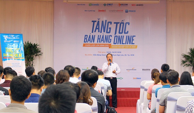 “Tăng tốc bán hàng online – Chiến lược lớn cho doanh nghiệp vừa và nhỏ” là hội thảo quy mô lớn tổ chức tại Hà Nội và thành phố Hồ Chí Minh do Hiệp hội Thương mại điện tử (VECOM), công ty CP Công nghệ DKT phối hợp cùng sàn TMĐT Sen Đỏ và các chuyên gia TMĐT tổ chức nhằm chia sẻ về chiến lược phát triển kinh doanh online một cách bền vững cho các doanh nghiệp Việt. Hai buổi hội thảo tổ chức tại Hà Nội và thành phố Hồ Chí Minh đã thu hút hơn 600 chủ doanh nghiệp tham gia.