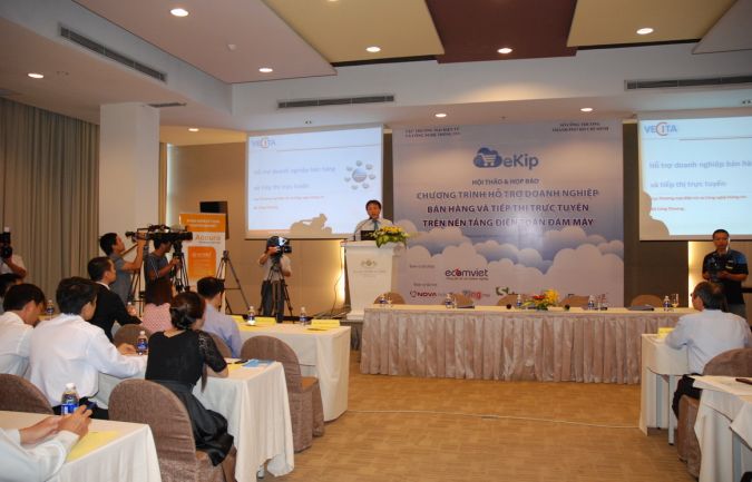 Tại buổi Hội thảo & Họp báo, EcomViet đã giới thiệu những tính năng ưu việt của giải pháp eKip. Chỉ mất đúng 30 giây, doanh nghiệp sẽ khởi tạo ngay được một website toàn diện với đầy đủ tính năng của hệ thống bán hàng trực tuyến hiện đại. Doanh nghiệp có thể chọn giao diện trong 60 mẫu có sẵn.