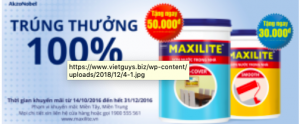 - AkozoNobel với chương trình MAXILITE – Mua sơn trúng thưởng 100%
