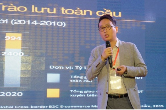 Ông Gijae Seong, Giám đốc bộ phận bán hàng toàn cầu của Amazon tại Singapore trình bày tại VOBF 2018 tại Hà Nội