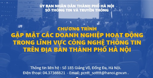 [Sở Thông tin và Truyền thông thành phố Hà Nội] Thực hiện Thông báo số 552/TB-UBND ngày 13/6/2017 của UBND Thành phố về kết luận của đồng chí Nguyễn Đức Chung – Chủ tịch UBND Thành phố tại cuộc họp về công tác thông tin, truyền thông phục vụ Hội nghị “Hà Nội 2017 – Hợp tác Đầu tư và Phát triển”, với mong muốn tìm kiếm các giải pháp nhằm thúc đẩy ứng dụng và phát triển CNTT, phát triển nguồn nhân lực CNTT, tháo gỡ khó khăn cho hoạt động sản xuất – kinh doanh của các doanh nghiệp CNTT, thu hút đầu tư và thúc đẩy các hoạt động khởi nghiệp, đổi mới sáng tạo trên địa bàn Thành phố hướng tới xây dựng Thành phố thông minh, Sở Thông tin và Truyền thông Hà Nội sẽ tổ chức Chương trình gặp mặt các doanh nghiệp hoạt động trong lĩnh vực CNTT trên địa bàn Thành phố.