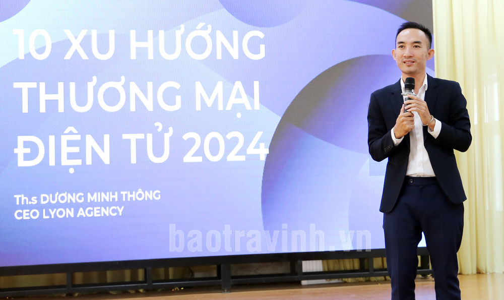 Tham gia chương trình, có trên 100 đại biểu là sinh viên, hộ kinh doanh, hợp tác xã, DN, giảng viên, viên chức của Trường Đại học Trà Vinh được nghe các chuyên gia thuộc Hiệp hội Thương mại điện tử Việt Nam, các công ty công nghệ chia sẻ các chuyên đề: "Ứng dụng ChatGPT và 10 công cụ AI trong thương mại điện tử để sản xuất nội dung trên mạng xã hội, sản xuất hình ảnh, sản xuất video tự động; 10 xu hướng thương mại điện tử năm 2024 định hình phát triển thương mại điện tử Việt Nam; phát triển DN thương mại điện tử chính thống và chuyên nghiệp để phát triển bền vững; cập nhật những thông tin pháp lý về thương mại điện tử dành cho DN; những công cụ trí tuệ nhân tạo phù hợp cho sinh viên trong việc nghiên cứu và học tập; những chiến thuật quảng cáo hiệu quả cho thương mại điện tử năm 2024…" Đồng thời, các chuyên gia tọa đàm về thương mại điện tử giúp đại biểu hiểu rõ hơn và áp dụng hiệu quả vào quá trình kinh doanh.