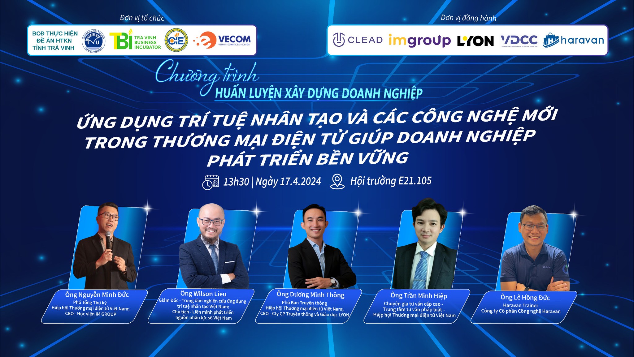 Chiều ngày 17/4, Hiệp hội Thương mại điện tử Việt Nam phối hợp với Trường Đại học Trà Vinh tổ chức chương trình huấn luyện, xây dựng doanh nghiệp (DN) chủ đề “Ứng dụng trí tuệ nhân tạo và các công nghệ mới trong thương mại điện tử giúp doanh nghiệp phát triển bền vững”.