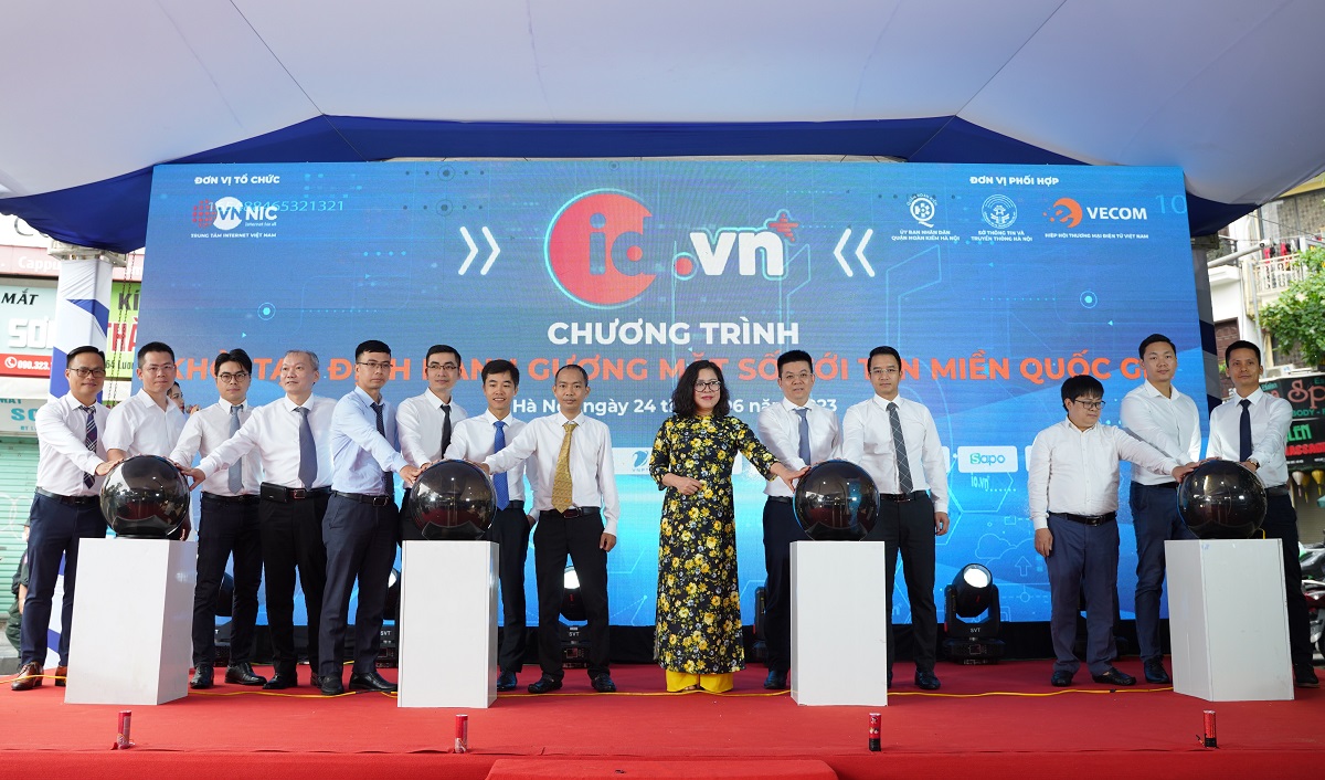Sáng ngày 24/6/2023, Trung tâm Internet Việt Nam (VNNIC) - Bộ Thông tin và Truyền thông phối hợp cùng UBND Quận Hoàn Kiếm và Sở Thông tin và Truyền thông Hà Nội tổ chức sự kiện “Khởi tạo định danh gương mặt số với tên miền quốc gia .vn” trên phố đi bộ Hoàn Kiếm, Hà Nội.