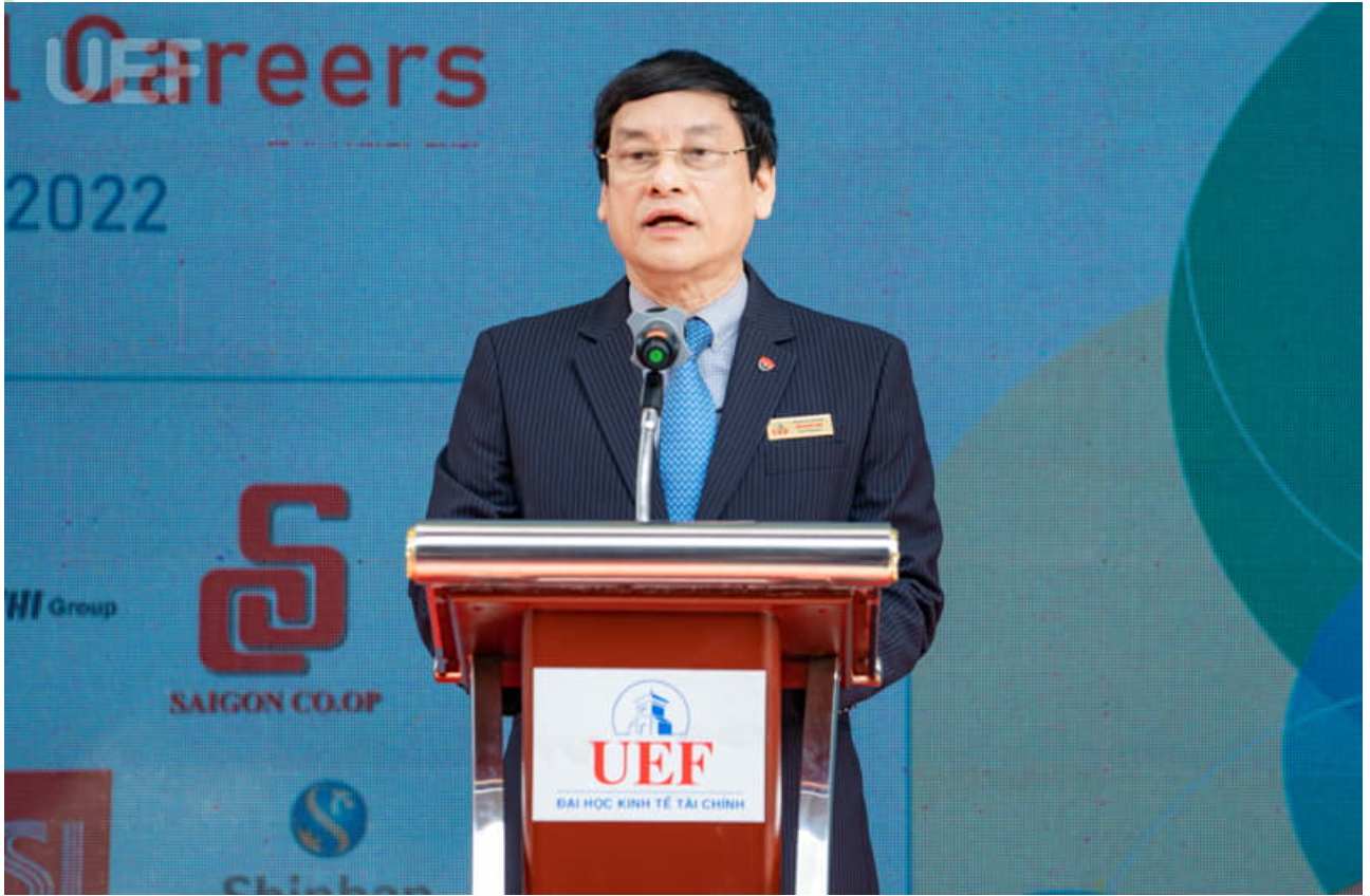 Mở đầu chương trình, ông Đỗ Quốc Anh – Phó Chủ tịch Hội đồng trường đã phát biểu chào mừng Ngày hội việc làm 2022, đồng thời chia sẻ thông tin về ký kết MOU giữa UEF và 15 doanh nghiệp – đánh dấu cột mốc 15 năm thành lập trường.