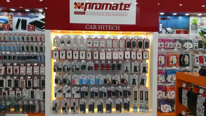 Promate Shop được thiết kế dựa trên một concept đồng nhất và duy nhất của thương hiệu này tại Việt Nam. Khách hàng có thể nhận diện một cách nhanh chóng qua cách thức bài trí, chưng bày sản phẩm và màu sắc đặc trưng của Promate.