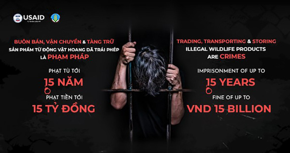 “Theo quy định tại điều 244 Bộ luật hình sự 2015 (sửa đổi, bổ sung 2017) các hành vi vi phạm về động vật hoang dã có thể phạt tù lên đến 15 năm hoặc 5 tỉ đồng đối với cá nhân và phạt tiền đến 15 tỉ đồng, đình chỉ hoạt động từ 6 tháng đến 3 năm hoặc đình chỉ hoạt động vĩnh viễn đối với pháp nhân.”