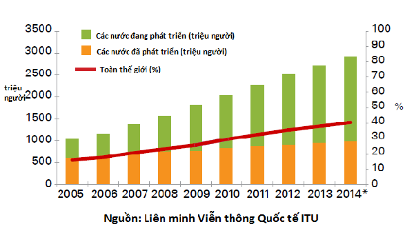 Số lượng người sử dụng Internet (Nguồn: ITU).