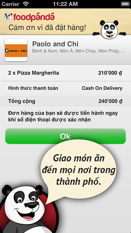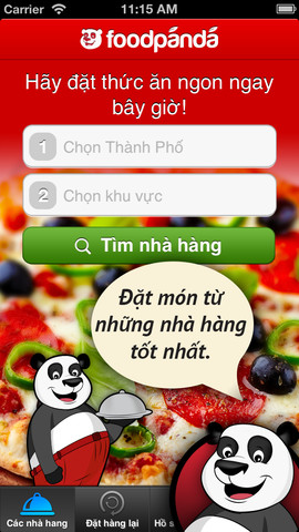 Trong những tháng vừa qua, Foodpanda đã cho ra mắt một phiên bản trên điện thoại dành cho iOS và Android, và đang là phiên bản đặt thức ăn trực tuyến dẫn đầu ở hầu hết các quốc gia. Ứng dụng đặt thức ăn trực tuyến giao tận nơi của Foodpanda là cách thức đặt thức ăn nhanh nhất tai Việt Nam. Chỉ với vài bước, bạn đã nhanh chóng đặt thức ăn tại gần 800 nhà hàng tại 4 thành phố lớn Hà Nội, Đà Nẵng, Hồ Chí Minh, Nha Trang. Rất đơn giản, chỉ cần cho biết nơi bạn đang ở, Foodpanda sẽ tự động kiểm tra vị trí và cho bạn biết những nhà hàng nào sẵn sàng giao thức ăn đến cho bạn trong khu vực gần bạn nhất. Ngay sau khi đặt hàng, bạn sẽ nhận ngay tin nhắn qua điện thoại nhằm xác nhận thông tin đặt hàng và thời gian giao thức ăn.