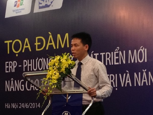 Thông tin trên thu hút sự quan tâm của rất nhiều doanh nghiệp tham gia tọa đàm “ERP – Phương thức phát triển mới: Nâng cao trình độ quản lý và năng lực cạnh tranh” vừa được Công ty Hệ thống thông tin FPT (FPT IS) và SAP phối hợp tổ chức sáng nay, 24/6/2014 tại Hà Nội.