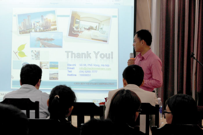 Ảnh 2. Ông Bùi Tiên Phong trình bày về lợi ích khi tham gia sàn du lịch Mangdatphong
