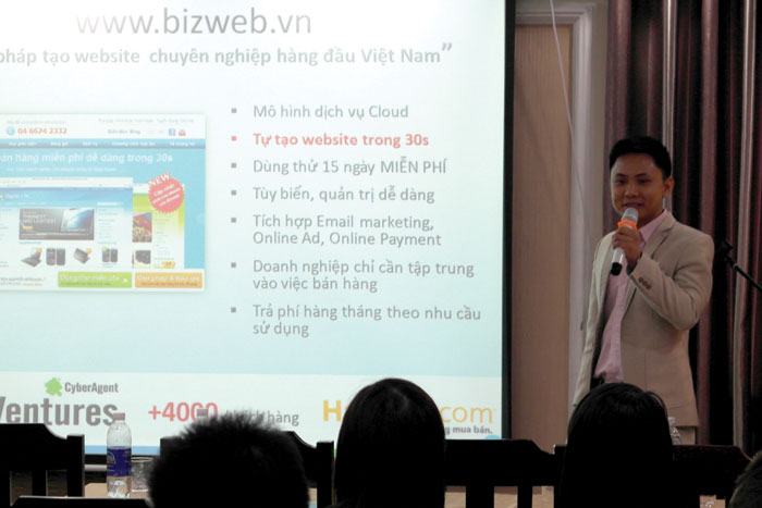 Ảnh 3. Ông Trần Trọng Tuyến giới thiệu công nghệ tiên tiến Bizweb giúp xây dựng website du lịch
