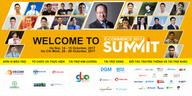 Được bảo trợ chính thức bởi Hiệp Hội Thương mại Điện tử Việt Nam (VECOM) và Hội Doanh nghiệp trẻ Hà Nội. eCommerce Summit – Hội nghị thượng đỉnh thương mại điện tử 2017 sẽ trở thành cầu nối đáng tin cậy của những người yêu thích, đam mê ngành “Thương mại điện tử”. Với sứ mệnh đưa ngành “Thương mại điện tử” trong nước phát triển và bắt kịp với Thế giới thông qua việc học tập những công nghệ, hệ thống hiện đại; kết nối với các chuyên gia hàng đầu thế giới; tháng 10 này, ECS chính thức bắt đầu với sự đầu tư chất lượng hơn về cả nội dung và hình thức.