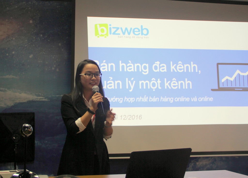 Bà Lê Nga – đại diện Bizweb đưa ra giải pháp kết nối các kênh bán hàng trực tuyến thông qua mềm phần bán hàng Sapo