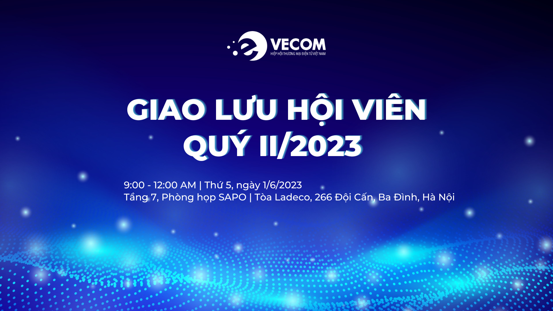 Ngày 01/06/2023, VECOM tổ chức Giao lưu Hội viên quý II/2023. Tham dự buổi giao lưu có đông đảo hội viên VECOM và các doanh nghiệp đối tác quan tâm tới lĩnh vực thương mại điện tử. Đặc biệt, có sự tham dự của Đoàn lãnh đạo Thành phố Tân Châu, Tỉnh Sơn Đông, Trung Quốc sang giao lưu, hợp tác với Hiệp hội thương mại điện tử Việt Nam.