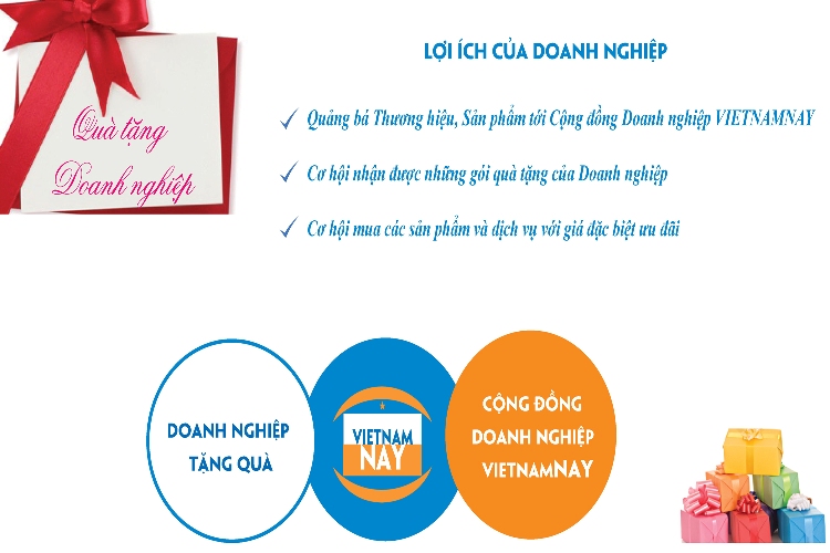 Quà tặng Doanh nghiệp là một cơ hội tốt để các Doanh nghiệp Quảng bá miễn phí thương hiệu, sản phẩm và dịch vụ cũng như mở rộng mối quan hệ đến Cộng đồng Doanh nghiệp Việt nam trên Vietnamnay.com.