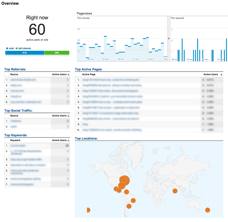 Báo cáo thời gian thực (Real-Time reporting) là một công cụ tuyệt vời nhằm theo dõi lưu lượng truy cập vào một trang web tại thời điểm thực tế. Báo cáo thời gian thực này sẽ thể hiện cho bạn thấy những ai đang truy cập vào trang web của bạn, họ đến từ đâu, vị trí địa lý của họ và các trang mà họ vào xem ở chính thời điểm đó.