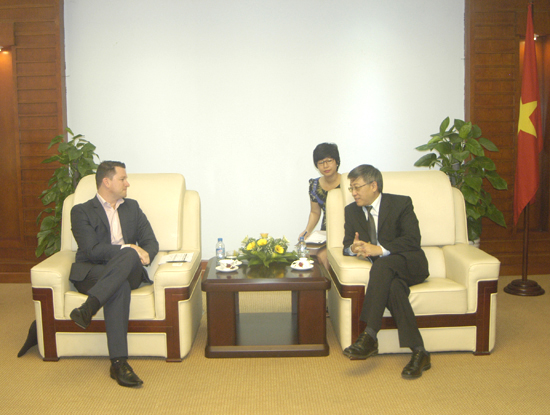 Thứ trưởng Bộ TT&TT Lê Nam Thắng (bên phải) tiếp đại diện Liên minh Internet châu Á sáng 10/9/2014 tại trụ sở Bộ TT&TT. Ảnh: Việt Thắng