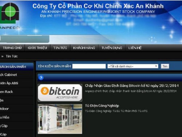 Ngày 28/2/2014 vừa qua, Công ty Cổ phần Cơ khí chính xác An Khánh (địa chỉ đặt tại Tây Mỗ, Từ Liêm, Hà Nội, hoạt động trong lĩnh vực gia công kim loại tấm, hệ thống tủ viễn thông, tủ rack, hệ thống thang máng cáp điện…) đã chính thức công bố trên website của doanh nghiệp về việc chấp nhận đồng Bitcoin là công cụ thanh toán trong các giao dịch, ký kết hợp đồng hàng hóa dịch vụ, thậm chí còn giảm giá 5% cho sản phẩm nếu thanh toán bằng Bitcoin..
