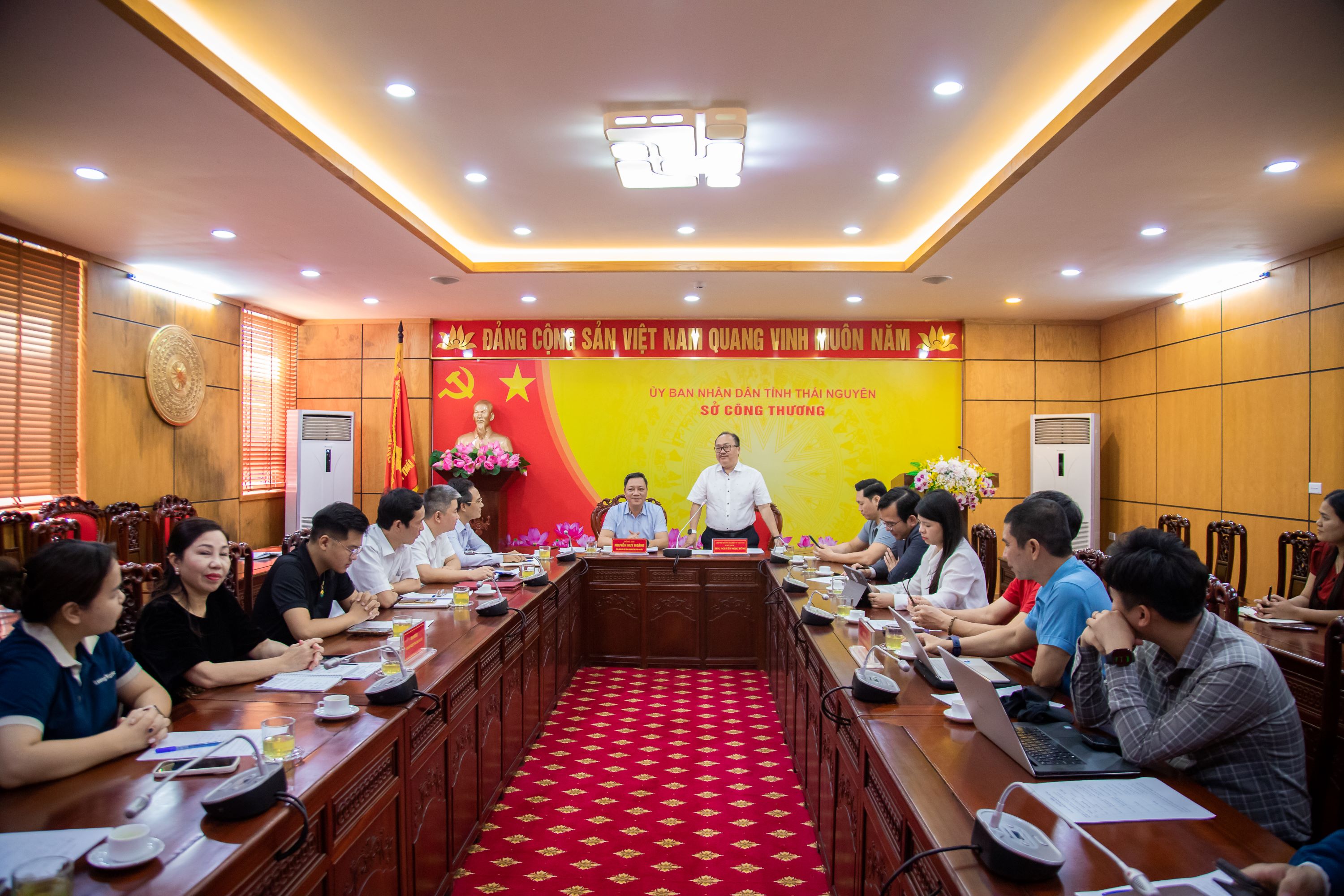Đại diện Sở Công Thương Thái Nguyên và một số đơn vị trên địa bàn tham gia tiếp đoàn