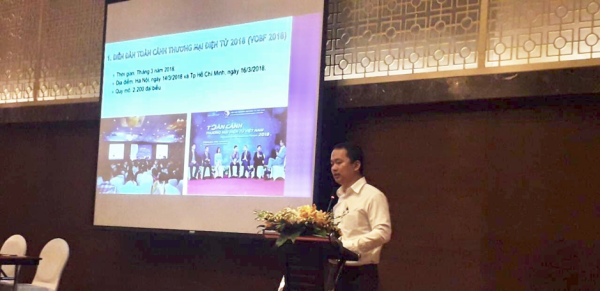 Ông Nguyễn Thanh Hưng – Chủ tịch VECOM trình bày Dự án Phát triển TMĐT bền vững