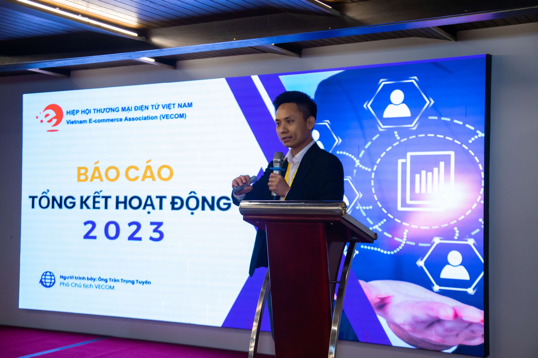 Hội nghị được mở đầu thông qua Báo cáo Tổng kết năm 2023. Báo cáo tổng kết này xây dựng theo Phương hướng hoạt động được thông qua tại Đại hội đại biểu toàn quốc lần thứ IV của Hiệp hội Thương mại điện tử Việt Nam, tình hình triển khai hoạt động các năm 2016 – 2022, Kế hoạch tổng thể phát triển thương mại điện tử quốc gia giai đoạn 2021 - 2025 và thực tiễn phát triển thương mại điện tử.