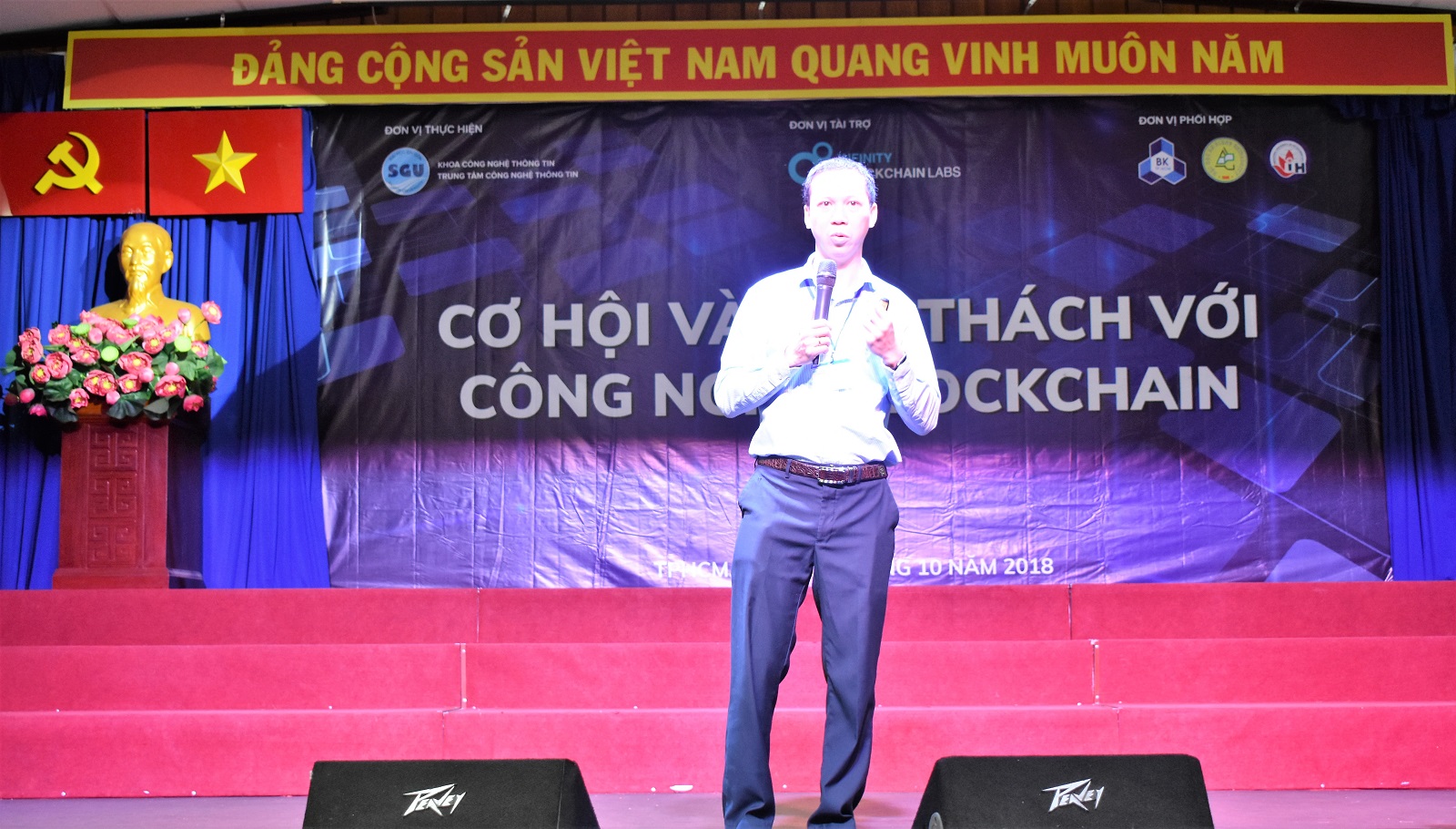 Mở đầu buổi hội thảo, ông Đỗ Văn Long – giám đốc chiến lược Vùng của IBL, đã có bài phát biểu khái quát tiềm năng và dự báo tác động của công nghệ blockchain đối với Việt Nam cũng như khu vực. Ông cũng giới thiệu ngắn gọn về Infinity Blockchain Labs, những dự án mà công ty này đang thực hiện với vị thế là đơn vị dẫn đầu hệ sinh thái blockchain tại Việt Nam, từng bước góp phần giúp Việt Nam nổi lên như là điểm sáng về việc áp dụng công nghệ mới này. Kế đến, tiến sĩ Nguyễn Quốc Huy Tưởng – Trưởng bộ môn Hệ thống thông tin của Đại học Sài Gòn chia sẻ những suy nghĩ và tư vấn hữu ích nhằm giúp các bạn trẻ sớm nắm bắt kiến thức cũng như sở hữu kỹ năng cần thiết về blockchain qua bài phát biểu “Sinh viên với công nghệ blockchain”.