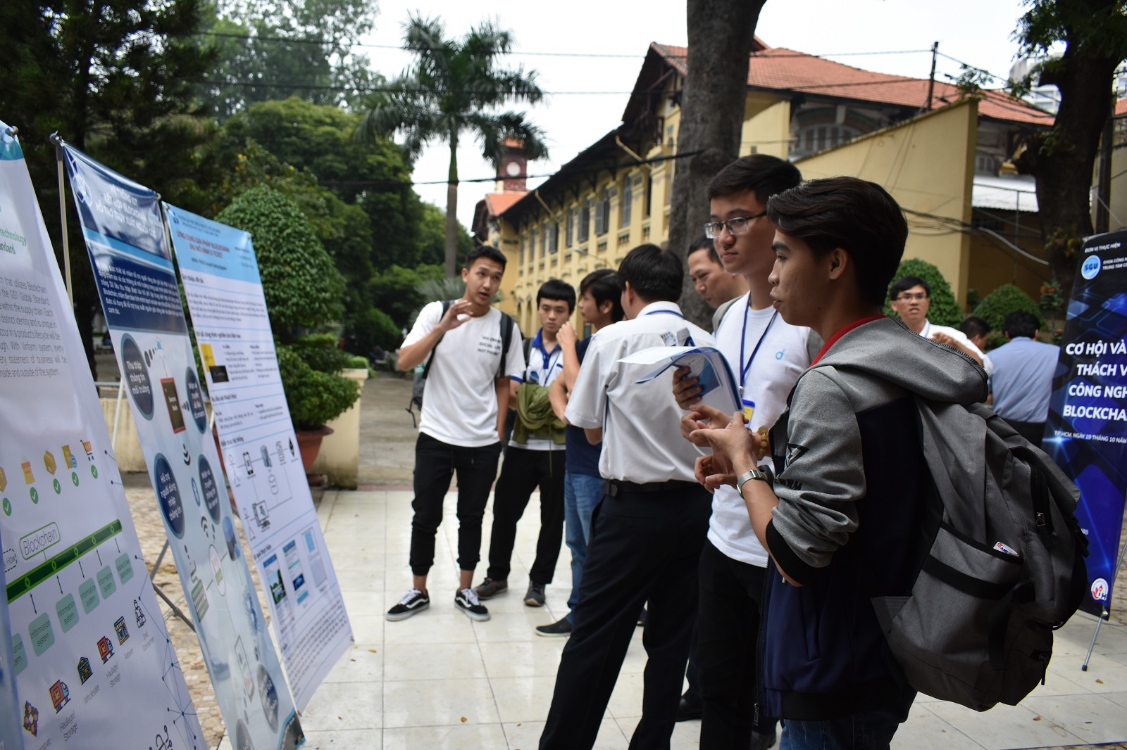 Sau đó là quãng thời gian đặc biệt thú vị với phần thuyết trình về các dự án ứng dụng blockchain từ những nhóm sinh viên xuất sắc từ nhiều trường đại học khu vực phía Nam. Trong số này, dự án “Áp dụng công nghệ blockchain vào quy trình sản xuất và tiêu thụ nông sản nhằm nâng cao lợi ích cho doanh nghiệp và người nông dân” của 3 sinh viên Đại học Bách Khoa TP HCM nhận được sự tán thưởng lớn. Đây là dự án xuất phát từ trăn trở về việc mặc dù có tiềm năng rất lớn nhưng giá trị mà nông sản Việt thu về vẫn bị đánh giá là chưa tương xứng. Hy vọng nhóm sinh viên Bách Khoa đầy nhiệt huyết và sáng tạo này có thể biến dự án của họ thành một giải pháp thực tế hoàn chỉnh, hữu ích trong tương lai gần.