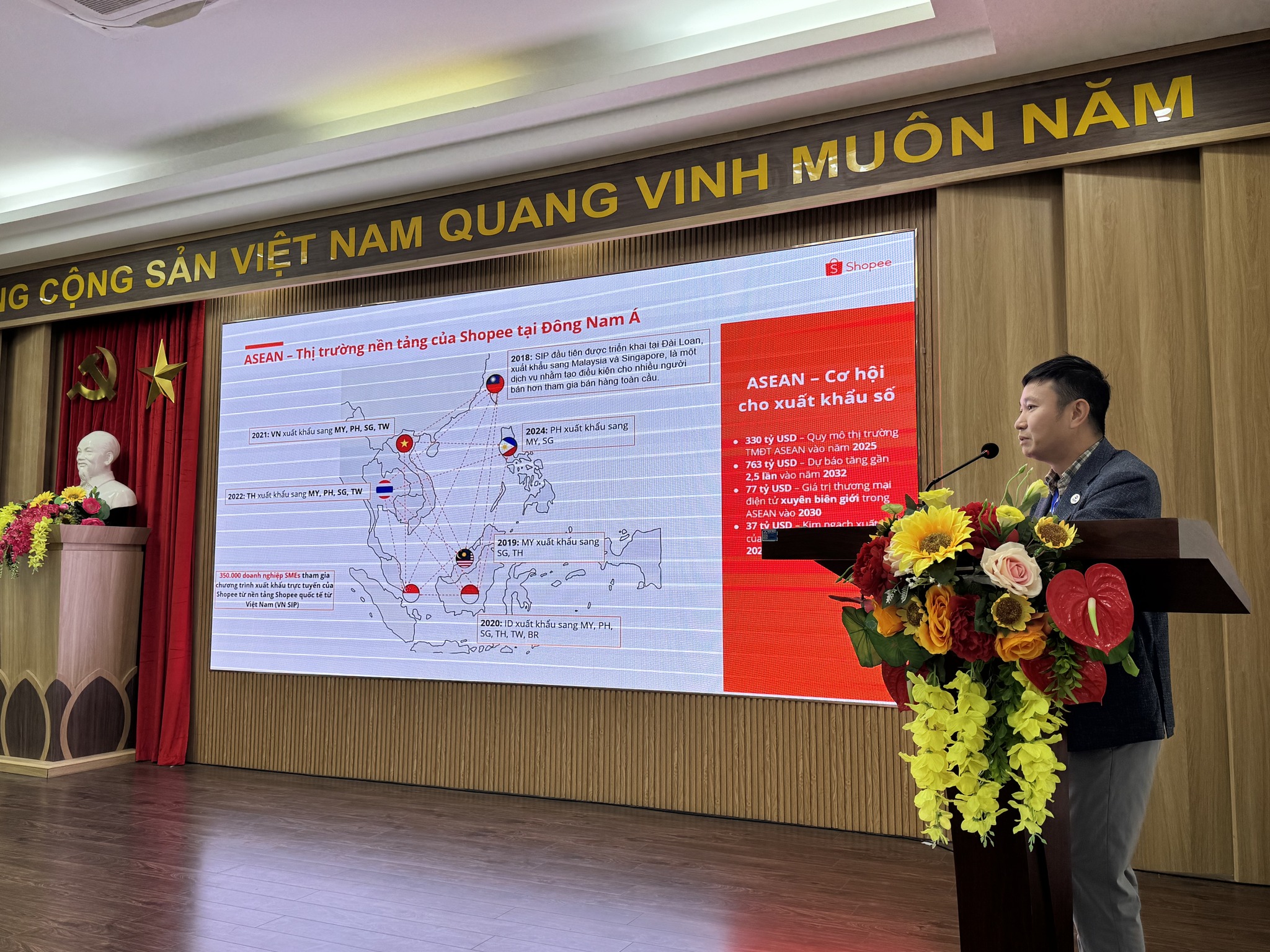 Tại phiên toàn thể, các diễn giả đến từ Amazon Global Selling, Google và Shopee đã mang đến những chia sẻ chuyên sâu về chiến lược, công cụ và giải pháp nhằm hỗ trợ doanh nghiệp Việt Nam mở rộng hoạt động xuất khẩu qua nền tảng thương mại điện tử xuyên biên giới.