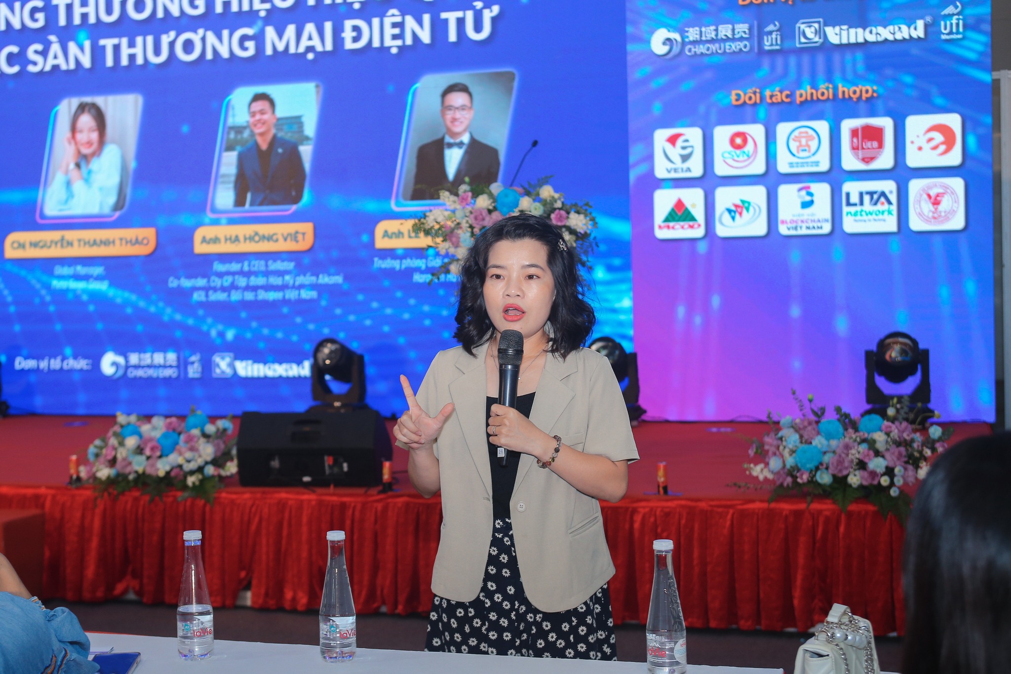 Chị Hường Vũ, Giảng viên Học viện Lazada và Co-Founder Nova Pharma, đã mở đầu hội thảo với những chiến lược xây dựng thương hiệu trên các sàn TMĐT. Chị đã nhấn mạnh tầm quan trọng của việc tạo dựng một hình ảnh thương hiệu mạnh mẽ, từ đó thu hút và giữ chân khách hàng.