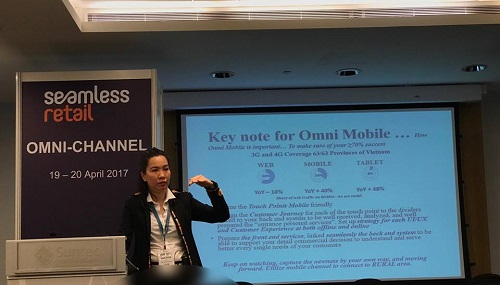 Bà Trịnh Vân Hoa – đại diện Công ty Nguyễn Kim Việt Nam tham luận tại phiên Omini Chanel tại Seamless Asia