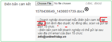 – Thông tin về doanh nghiệp như trong form đăng ký