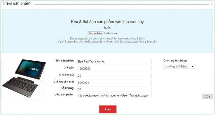 – Ở cuối phần đăng Khuyến mãi, doanh nghiệp có thể chọn file ảnh các Sản phẩm khuyến mãi cụ thể cho vào và bổ sung thông tin như hình bên dưới: