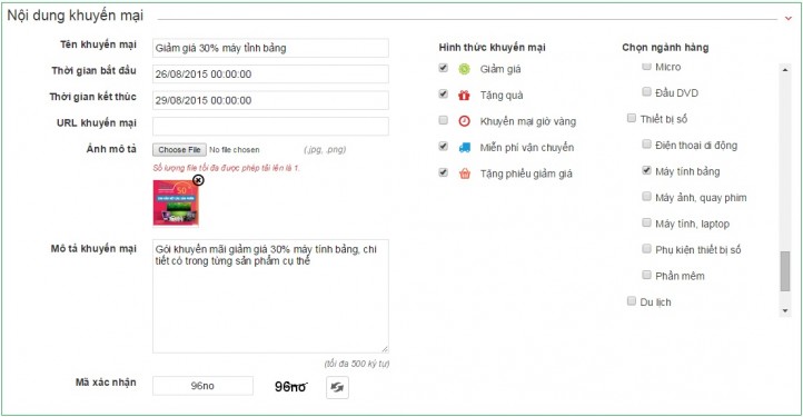 - Bước 3: Hoàn tất đăng Khuyến mãi, lưu lại và chờ xét duyệt Khuyến mãi này của Ban Tổ chức