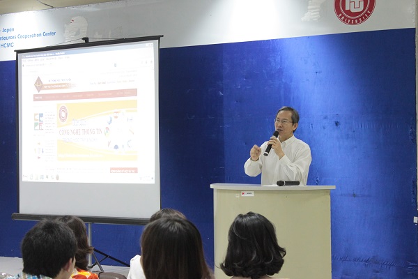 TS Nguyễn Văn Thoan giới thiệu các phần mềm giảng dạy.