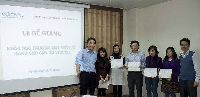 Tham gia đào tạo khóa học là đại diện lãnh đạo Cục TMĐT và CNTT và 19 học viên. Các học viên chủ yếu là cán bộ chuyên trách thương mại điện tử của Tập đoàn viễn thông quân đội Viettel.