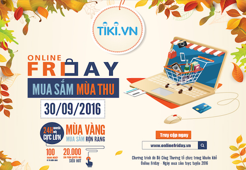 Hôm nay, ngày 15 tháng 9 năm 2016, Ban Tổ chức Ngày mua sắm trực tuyến 2016 chính thức phát động và công bố các hoạt động của Online Friday Mua sắm mùa Thu 2016. Dự kiến sẽ có hơn 20.000 sản phẩm khuyến mãi của 100 doanh nghiệp tham gia trên website OnlineFriday.vn và tại các cửa hàng, trung tâm thương mại trên toàn quốc.