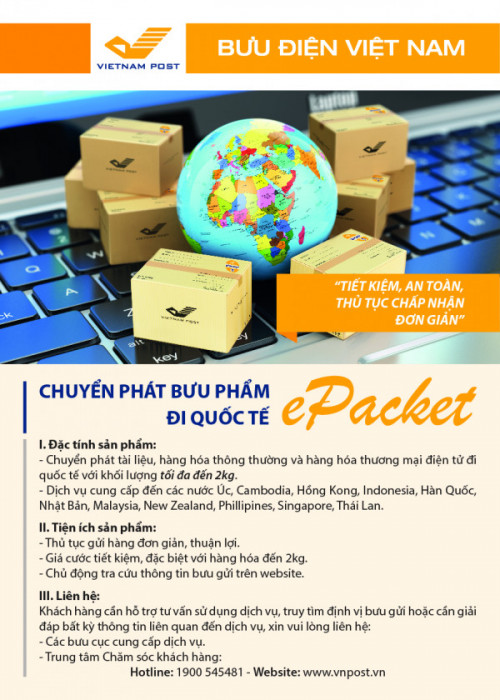Nhằm đa dạng hóa dẫy sản phẩm dịch vụ chuyển phát đi quốc tế, góp phần đáp ứng nhu cầu của khách hàng, đặc biệt khách hàng kinh doanh thương mại điện tử có nhu cầu gửi hàng đi quốc tế, Tổng công ty Bưu điện Việt Nam đã chính thức triển khai dịch vụ chuyển phát bưu phẩm APP ePacket đi các nước trong khu vực Châu Á Thái Bình Dương.