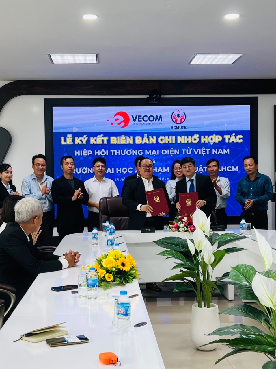 Ngày 26/07/2022, Hiệp hội Thương mại điện tử Việt Nam(VECOM) đã tiến hành ký kết Hợp tác với Đại học Sư phạm Kỹ Thuật TP.HCM (HCMUTE). Đây là bước khởi đầu, bước đệm quan trọng trong hành trình kiến tạo tri thức, mở rộng cơ hội học tập cho những sinh viên nhà trường, đặc biệt là Sinh viên chuyên ngành Thương mại điện tử.