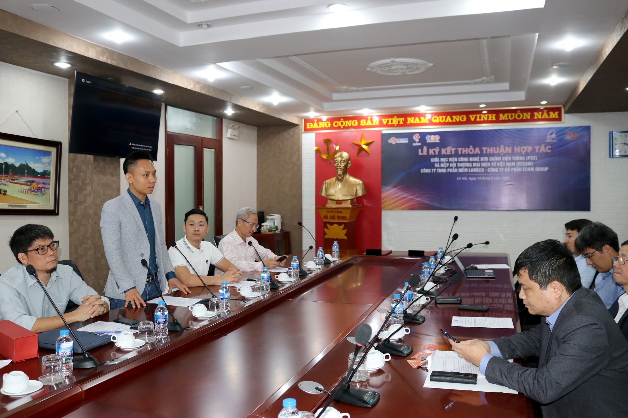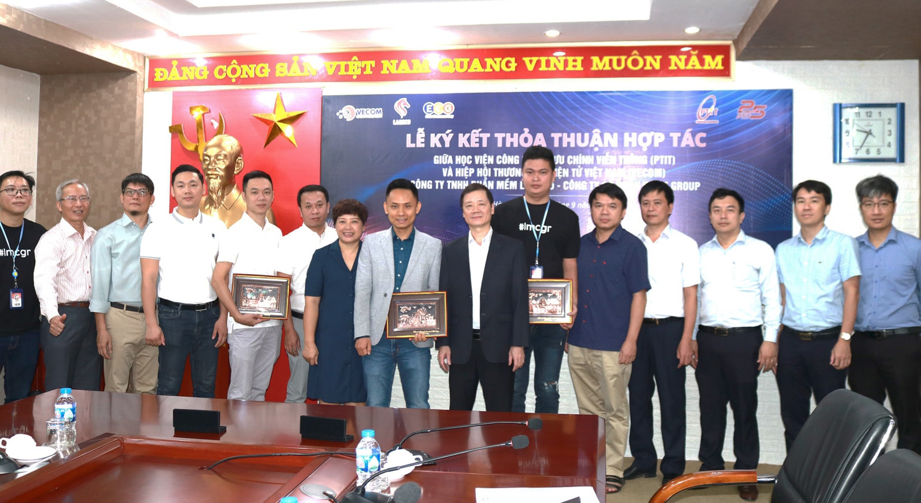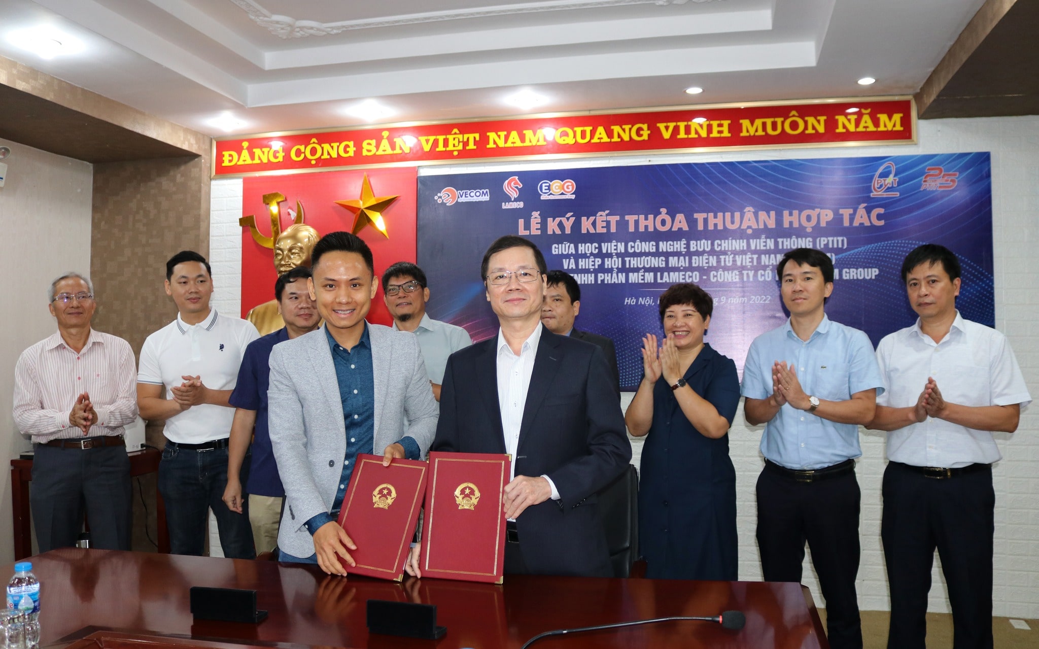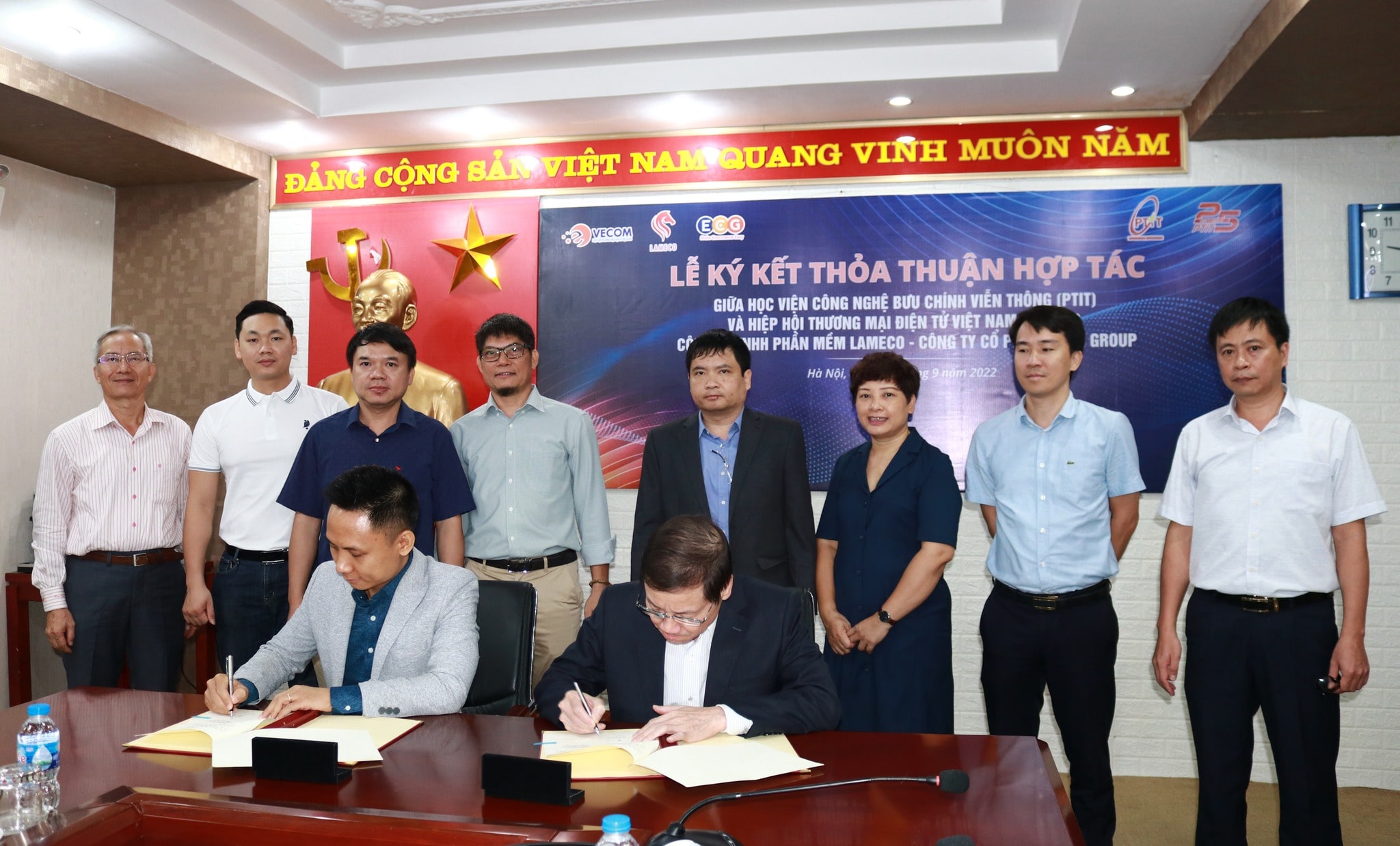 Sáng ngày 14/09, Hiệp hội Thương mại điện tử Việt Nam (VECOM) đã có mặt tại Học viện Bưu chính Viễn thông để ký biên bản hợp tác. Buổi lễ cũng có sự góp mặt của đại diện doanh nghiệp là Công ty TNHH Phần mềm LAMECO, Công ty Cổ phần ECOM Group.